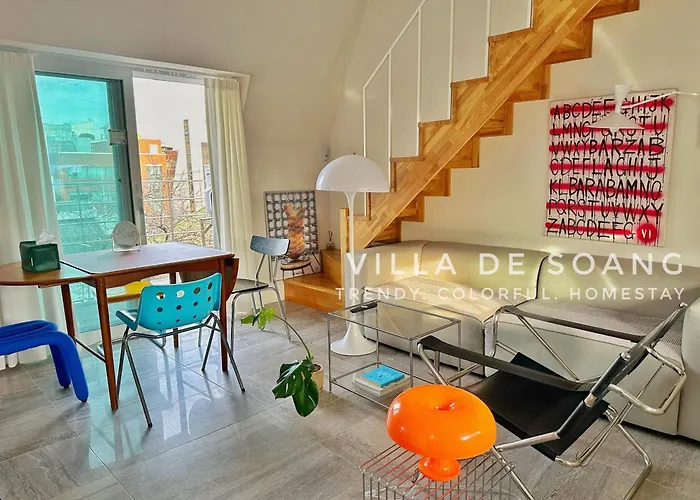 Villa De Soang 首爾位于麻浦区,毗邻特丽爱3d美术馆,距离汝矣岛汉江公园有10分钟车程。 这家住所设有露台,那里便可欣赏花园。